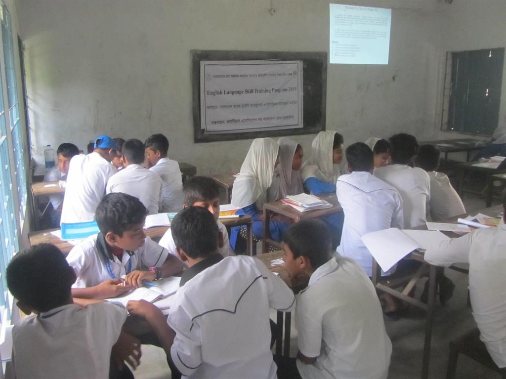 Students are provided with a Guide Book: Road to Learning: A guide to learn and converse in English. In a day-long session, the students are shown how the Guide Book can be used effectively to improve skills in Vocabulary, Pronunciation and Spelling, Listening, Speaking, Reading and Writing. The students are also provided with a booklet on Limericks and a DVD containing various resources for pronunciation, spelling, listening, reading and writing from different sources. (Limericks give useful guidance for pronunciation. The booklet is authored by Dr. Mushfiq Rahman.) Demonstration is given on their effective use. Students are also shown the connection between requirements in their curricula with the Guide Book.